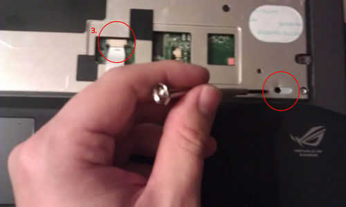 Y antes de que levante el área de descanso de la palma necesita primero desbloquearlo. Se traba en su lugar con un mecanismo simple (fotografiado, arriba el logo de la República de los jugadores). Utilice el destornillador para abrir poniendo en el agujero y tira del mecanismo a la derecha. Aquí deberá aplicar una fuerza suave para hacer el trabajo.