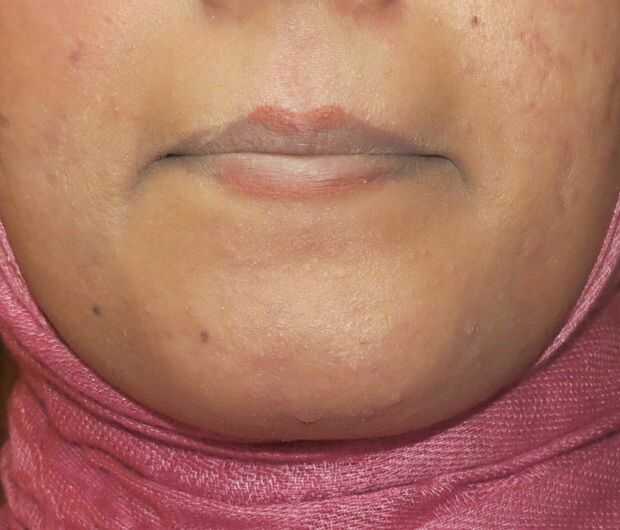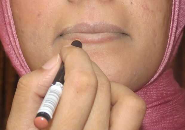 Para asegurarse de que mis labios son de color uniforme, aplicar una ligera capa de Fundación en su labio para ocultar cualquier decoloración.