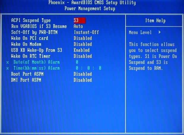 - S3 (en espera) el CPU no tiene ningún poder; Regenera la memoria RAM como mínimo; la fuente de alimentación está en modo de ahorro de energía. Este modo también se denomina «Salvar a RAM».