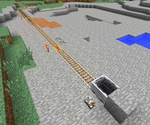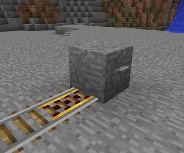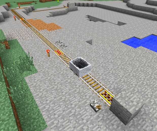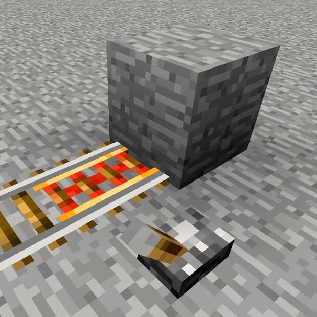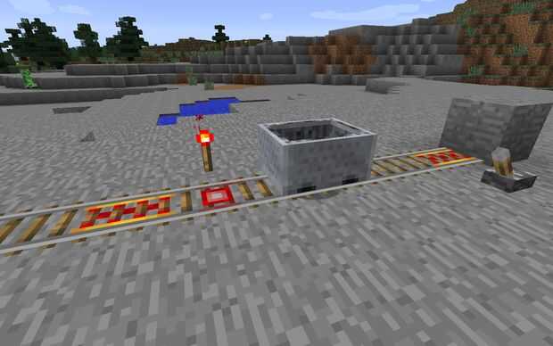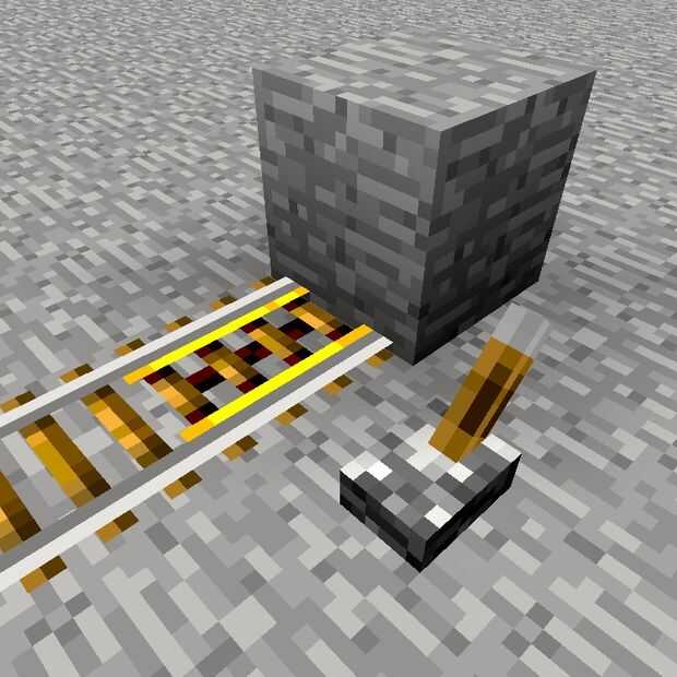- Potencia con un Bloque de Redstone RedstoneTorch, Redstone en combinación con una palanca o botón Antorcha Restone, o simplemente una palanca o botón; usando una palanca se encenderá el riel y apagado, un botón enciende temporalmente y una antorcha de Redstone le dejará en