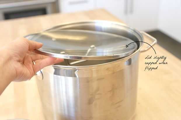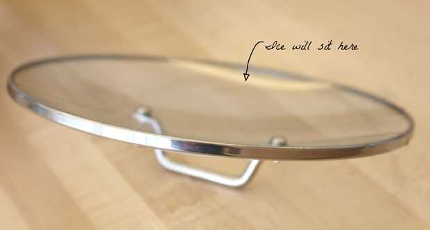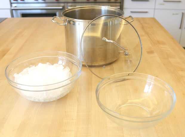 Una olla profunda con una tapa que es cóncava si al alza de lado (es abovedado, es decir, si Coloque el bote correctamente) esto servirá para sostener el hielo.