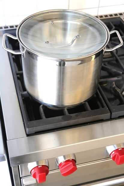Coloque su recipiente de vidrio (frasco receptor) en tu olla, asegurándose de que flota lo suficientemente bien como para permitir un poco de agua que se verterá en ella sin hundirse.
