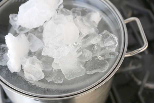 Una vez la tapa, coloque hielo sobre ella. Cuánto hielo se utiliza depende de cuán grande la tapa es, pero como que se derrite, puede tirar hacia fuera y ponga hielo fresco en la misma.
