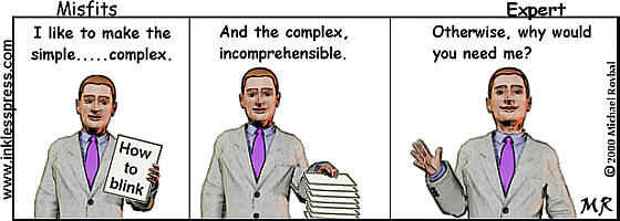 ¿Podemos aprender de los expertos? Claro. Tienen sus usos. ¿Tienen las soluciones que se llegarán a la base de nuestros problemas? Al parecer no. Después de siglos de seguir sus teorías y sus soluciones, todavía tenemos gran número de los ignorantes, el criminal, el malsano, locos, los pobres y los perezosos.