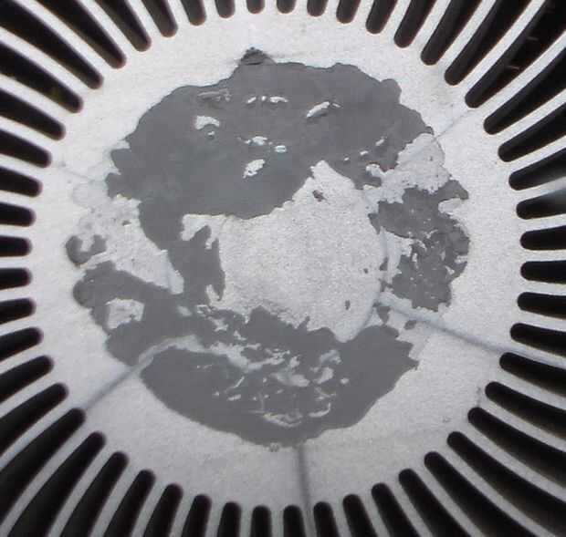 Soy un firme creyente de que se separa una cantidad abundante sobre toda la superficie que entra en contacto con el disipador de calor. La razón de esto es que creo en la la ley que establece la máxima transferencia de calor ocurre cuando el área más grande está tocando el material conductor.