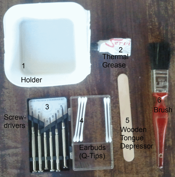 5. madera depresor de lengua u otro objeto suave para raspar la grasa térmica.