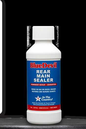 Demonio azul trasero principal sellador. Si eres de opciones, es un método bastante barato que ha trabajado para algunas personas con un sello principal trasero de fugas. Sólo tiene que añadir una botella de 8 onzas por cada 8 cuartos de galón de aceite del motor y se debe por lo menos frenar la fuga y puede incluso detenerlo. En $15 por botella, es un precio pequeño a pagar por un producto que parece no tener ningún otro riesgo a él.