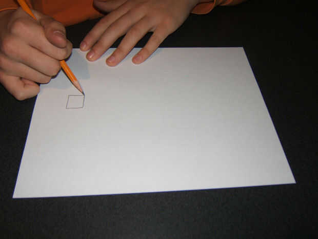 estas son instrucciones sobre cómo dibujar un laberinto simple. Todo lo que necesitas es un lápiz y un papel.Paso 1: esquema Dibujar un cuadrado. Borrar dos enteros en él. Pongo minas en las esquinas como se muestra en la imagen. Esto será su entrada