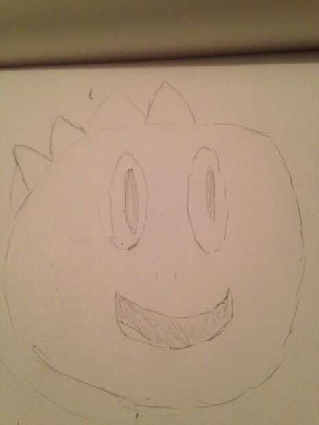 Esto puede no ser exacto pero lo que sea. Así que quieres dibujar un círculo para la cabeza, luego para el uso del cara a cara Cruz, pero yo no uso los. Y los ojos, boca y nariz pequeña, cómo siempre que desee. Y las cosas puntiagudas en la cabeza.
