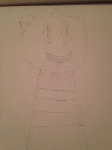 Dibujar el cuerpo, como hacen algunos corto de tal forma de frijol, luego añadir las rayas sabemos, yah. Niños usan camisas de rayas. Por cierto chico Monster no tiene brazos.