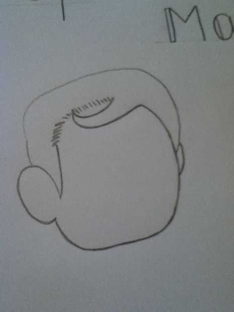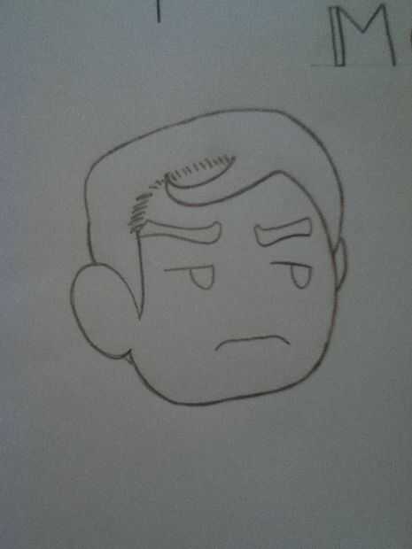 comencé mi personaje con la cabeza. Hacer pequeñas líneas que conecte y luego pasan sobre ellos con una línea más oscura para disimular las rayas pequeñas.