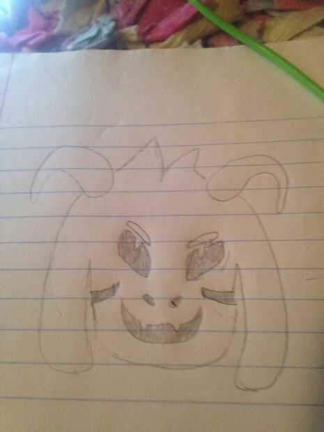 Primero quieres que inicie con la cabeza. Quiere imaginar lo que vería Asriel como y que dibujar. O ser perezoso mira el cuadro. : p recuerda, no tiene que ser perfecto, el mío no es (como los cuernos y los ojos).
