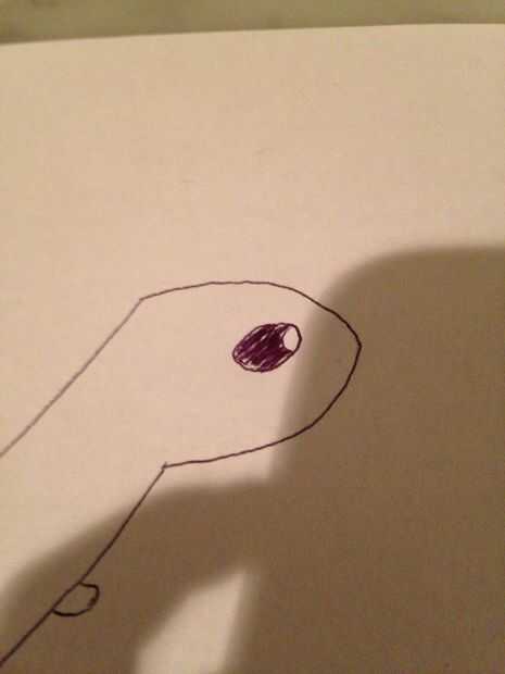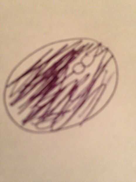 Ahora dibuja un círculo y luego un pequeño semicírculo en él luego pantalla de descanso por lo que parece en la foto. O lo suyo es un tipo diferente de ojo negro con dos círculos