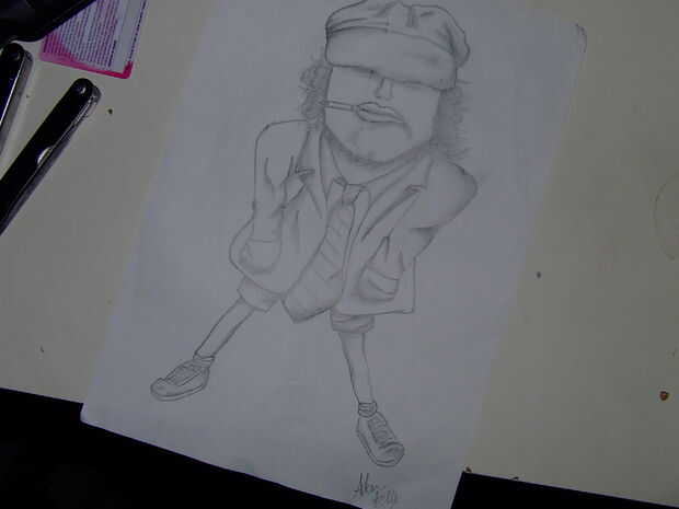 Mientras tanto estas dos imágenes tendrá que ser suficiente, la primera siendo una caricatura de Angus Young, o fue Bon hice demasiado muchos caricaturizan en una sola noche y la segunda es de mi curso que muestra un buen ejemplo de rayado en forma en el cuerpo del mechero (mejor ignora al resto estaba disparando una página por minuto para una fecha límite)