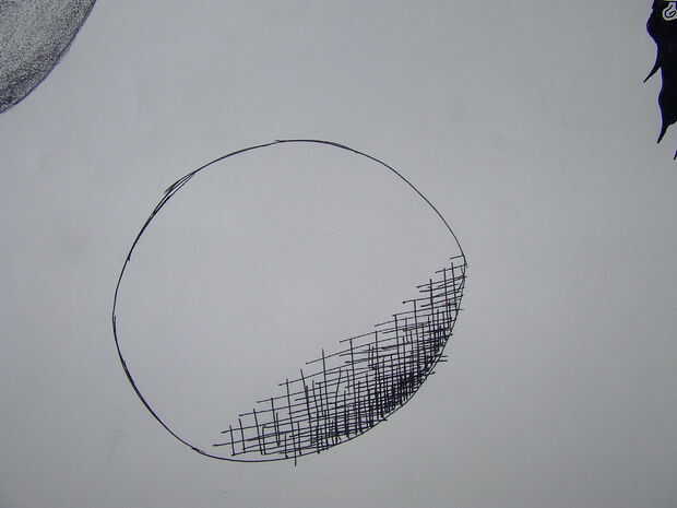 Se dará cuenta es muy áspero y bastante grandes, esto es porque es un ejemplo y en la práctica esto se hace generalmente con pequeñas escotillas y una pluma muy fina. También intenta su mejor no para 'zig-zag', donde usted garabatos en lugar de crear líneas separadas, hacer la escotilla desigual y hay olas de los extremos de garabatos a través del dibujo.