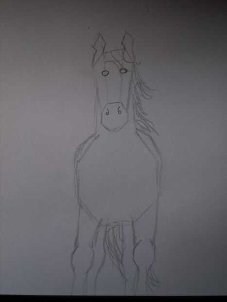 enseñará a dibujar un caballo simplePaso 1: El comienzo Cuando llamo un caballo generalmente empiezo con las orejas por alguna extraña razón pero creo que inicio con la estructura simple de la cabeza antes que nadaPaso 2: cuerpo Después de la simple