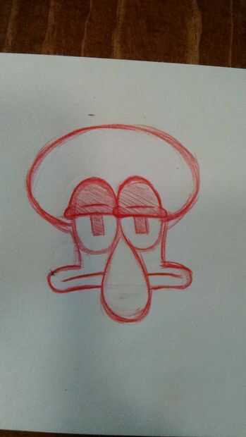 para hacer de Calamardo de la boca, dibuja una horizontal, ligeramente vuelta hacia abajo de la línea así