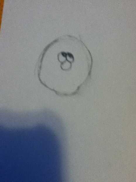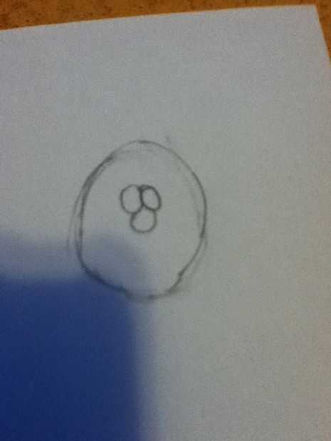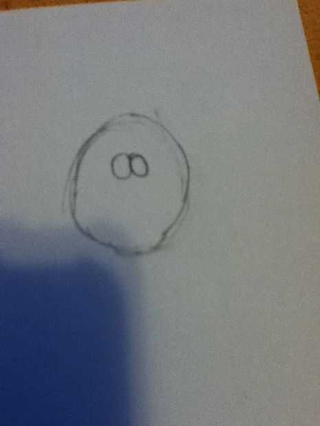 Dibujar dos pequeñas formas por ejemplo, dentro de los ojos y dibuje un óvalo justo debajo de los ojos por la nariz