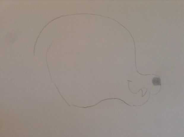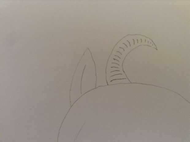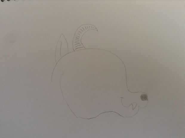 Dibuja un círculo y luego curva hacia abajo para formar un hocico y una boca. Dibuje una línea corta en el extremo de la boca. A continuación, dibuje un óvalo al final de la boca y un solo diente que sobresale de la boca. Ahora, para los oídos, necesita dibujar un triángulo corto y sordo en la cabeza. 1/2 de un centímetro de la oreja, dibujar el cuerno con pequeñas líneas en él.