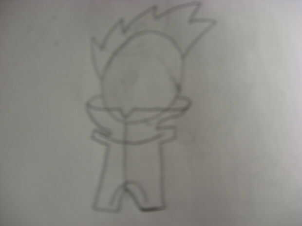 Paso 1: Forma de la cara Dibujar primero un empate círculo una línea hacia abajo el centro del círculo, entonces dos rectas por el medio de la línea.Paso 2: La forma del cuerpo Debajo del círculo dibujar una forma de cuerpo básico como este!Paso 3: E
