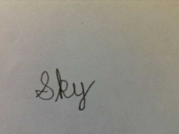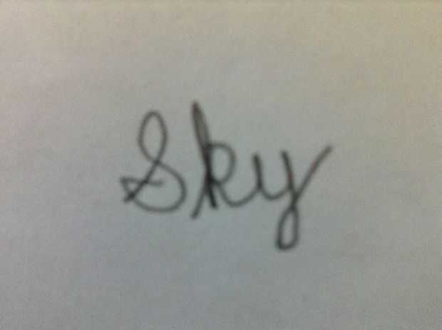 Para hacer la firma del cielo, escribir "Cielo" en cursiva. Entonces, hacer la "y" sube y alrededor de la curva por lo que parece un grano. Hacer tres puntos sobre el "grano", por lo que ahora parece una pata de perro.
