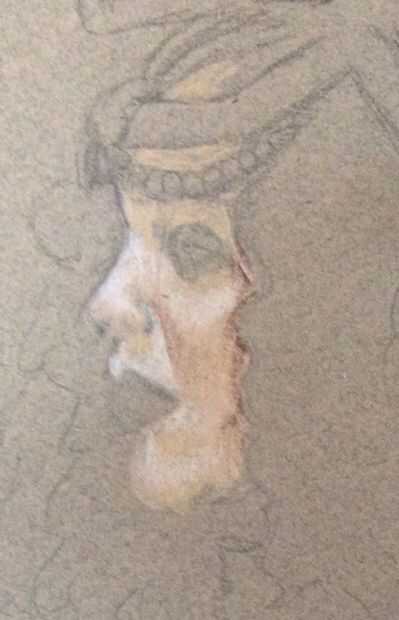 En el momento que lo hice no tengo todos mis lápices Prismacolor tuve que utilizar más barato marcas para ciertos colores. A veces tienes que hacer esto y es una gran manera de experimentar y refinar sus habilidades. Es bueno para tratar de buscar en todo la base de colores y en primera, pero cuando dibujo me gusta de trabajar con una parte en un momento y para mí que ayuda a mantenerlo como cerca de la imagen que pueda. Comience siempre con la cara. Para mí eso es la parte me gusta más y es tan importante para la imagen. Usé a una especie de papel granoso, marrón porque tiene el color muy pop y tipo de tiene mejor, pero el problema es que si usas lápices que no sean de prismacolor, no mezcla super bien. Comencé tomando un color melocotón claro por Colorray y bloqueo en la cara. Uso mucha presión porque quiere cubrir tan bién como posible. Básicamente para la piel he usado el melocotón ligero, un Prismacolor blanco y una Crayola marrón. Terminó medio marrones para que el marrón que usa es realmente bastante oscuro así que tuve que usar muy poco y luego ir sobre todo con una batidora de lápiz de color, que es básicamente sólo un lápiz de color incoloro; muy ceroso. Esto aclara los colores y mezcla muy bien. A veces utilizo la batidora para dibujos a lápiz blanco y negro porque hace que el lápiz más oscuro que hace para un efecto dramático cuando se usa apropiadamente. Una vez que el melocotón está bloqueado, comencé con los reflejos, a partir de capa muy ligera de color blanco en las partes altas de la cara, su frente, puente de la nariz, barbilla, área del labio superior. Luego fui y añade otra capa de blanco en medio de la zona ya resaltada, haciendo un poco más brillante mirada. a continuación usé marrón y ligeramente contorneado el la fosa nasal, línea de la mejilla y de su pelo sobre su cara y el guión entre su nariz y ojos. Entonces continúa sombreando ligeramente agrega capas pequeñas. Otra vez me fui con la batidora. También he añadido un toque de naranja para darle a su piel un aspecto más glowy. En la foto tenía algún tipo de pedrería en el rostro así que puse los de después, pero sería mejor hacerlo antes. Ligeramente esbozadas las piedras y colores con blanco. Entonces tomé una luz azul y se indica un lado de ambos en el lado opuesto de que la luz se brilla en el rostro. Entonces tomé el marrón oscuro y ligeramente sombreado debajo de ellos para que se vea más 3D.