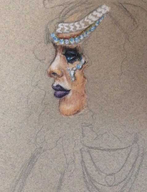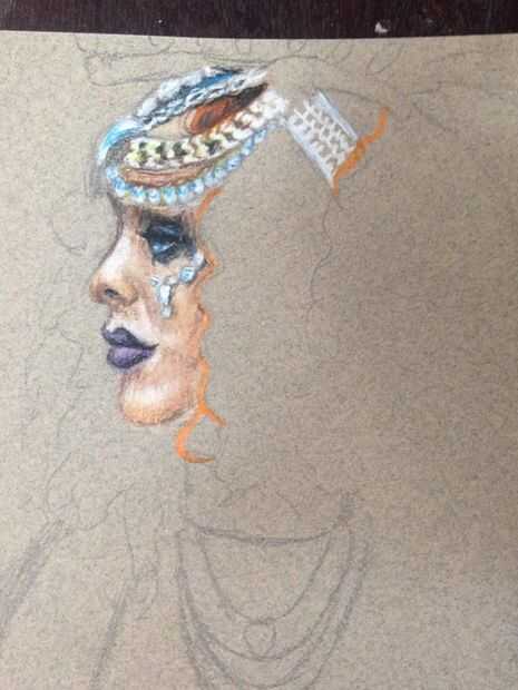 Lo de vestido de la cabeza era mucho más difícil. Era muy colorido, metálico y detallada. Comencé con la primera hebra. Acabo de hacer pequeñas perlas de blanco entonces agregó en luz azul y después llené en donde brillaba la piel mediante, describí el filamento con el marrón oscuro.