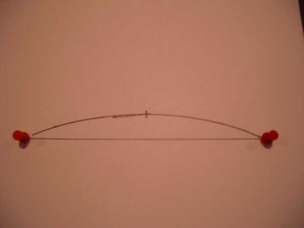 Este método produce un arco, un segmento de un círculo. Marque el ancho del arco y la altura del arco en el punto medio. Coloque un clavo u otro instrumento de restricción en los extremos del arco.