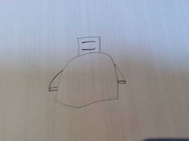 Para la cabeza dibuja un cuadrado, luego un empate una frente de la uni y una petulante smile.for las manos hacen una forma de cono.