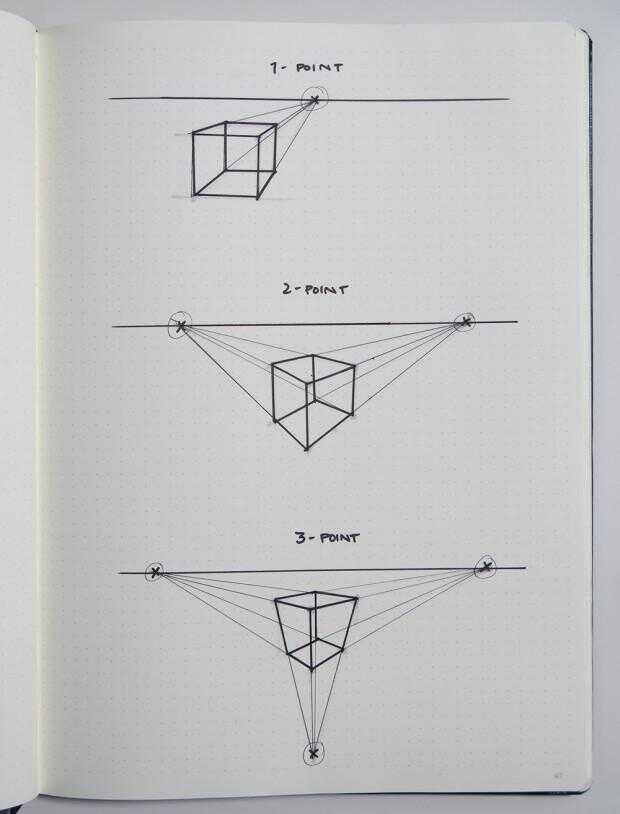 El número de puntos en cada perspectiva se refiere al número de puntos de fuga en el dibujo.