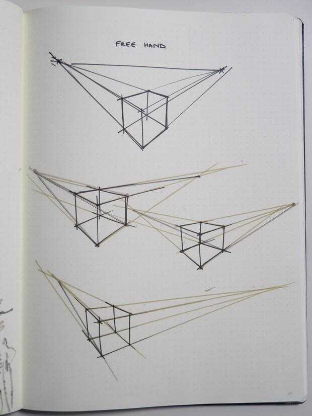 ¡ Entonces pruébalo sin extender sus líneas hasta los puntos de fuga. Usted puede comprobar si su perspectiva es correcta mediante la ampliación de las líneas si todos ellos convergen en el mismo punto que tienes derecho! Corregir las líneas usando otro color.