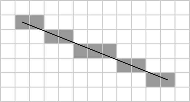 Ya que el CAD tenemos contiene 256 pasos discretos, técnicamente no podemos hacer ninguna línea "suave". Una manera de trabajar dentro de estas restricciones es común en aplicaciones de gráficos de computadora, como píxeles (pasos discretos en una pantalla) necesita a menudo representar gráficos vectoriales. El código que estoy usando emplea el algoritmo de Bresenham dibujo para crear una línea entre dos puntos dados con la función line() que tiene entradas de x1, y1, x 2 y y2, como los puntos inicial y final del vector.