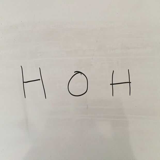 En el ejemplo, H demuestra para arriba dos veces por lo que se coloca simétricamente alrededor de O.