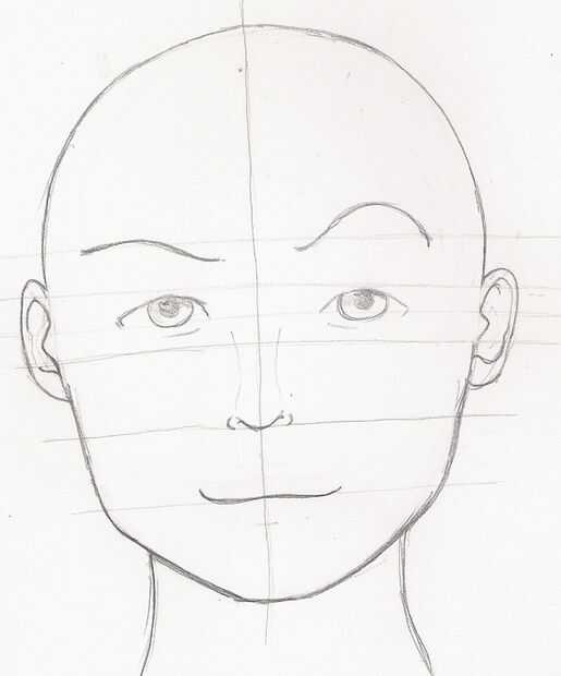 Las siguientes imágenes son ejemplos de una cabeza básica con una ceja levantada y sonrisa. Los ojos son un poco más realistas que un garabato como es la nariz, pero eso depende de gusto personal. Dejé en las líneas de partición para ver cómo estas piezas van juntos. ¿Quieres dibujar algo más realista? Echemos un vistazo a los componentes que conforman un rostro más realista.