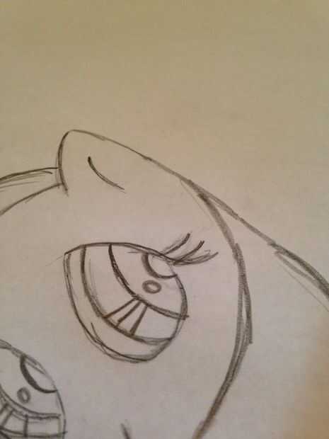 mi amigo dibujó un caballo al azar el otro día, y fue... Algo... Decidí copiarlo y he creado este estilo de dibujo de pony.Paso 1: Cara de Horror Draw a circle. Luego, dibujar un triángulo que se pega para arriba de la cabeza. Doodle una línea en el