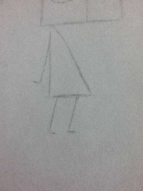 Dibujar un triángulo sólo ligeramente más pequeño que la cabeza de la zims por debajo. Dibujar el brazo al lado de él y sus pies debajo de él. Dibuja ligeramente.
