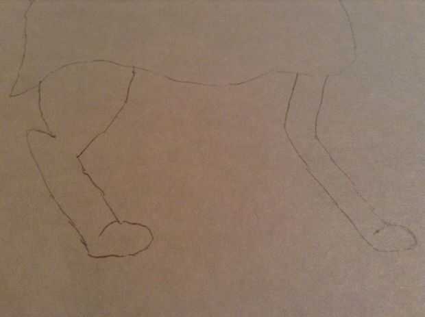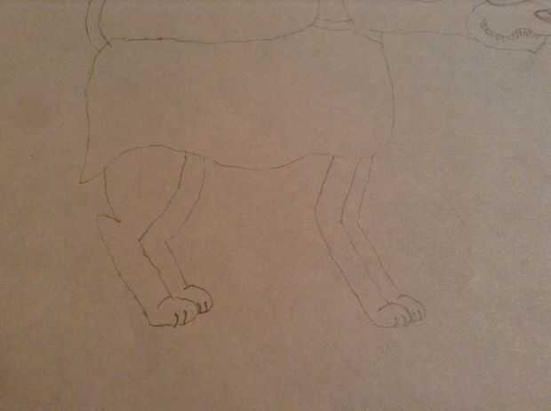 La cola es la parte más simple de esta historieta entera. Dibujar un punto fino de la grupa del perro. Para las piernas, trazar las líneas exactamente como en la foto.