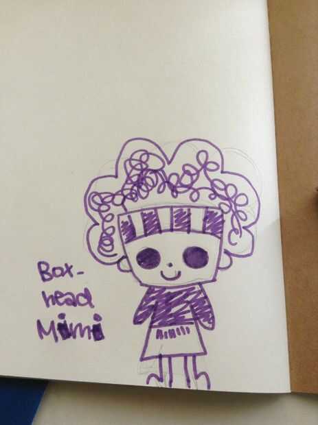 Rastro tú cabeza Mimi de la caja y luego borra las líneas de lápiz.