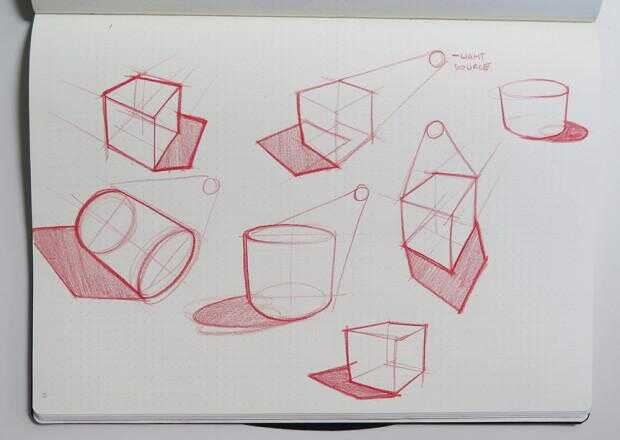 Practica esta técnica desde diferentes ángulos con cubos y cilindros.