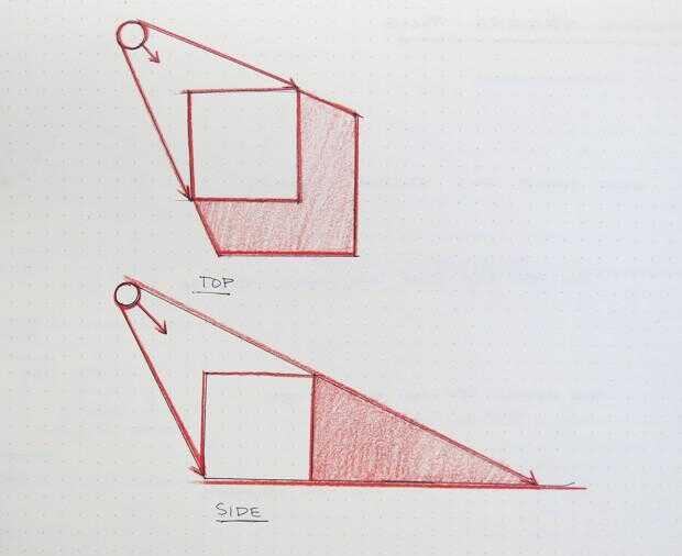 La forma más sencilla de una sombra precisa de una figura simple está cayendo la cara superior de la figura el plano de tierra y desplazamiento hacia atrás como quieres que tu sombra. (cuanto mayor sea la fuente de luz es menor será la sombra. Al igual que cómo tu sombra es más pequeña al mediodía cuando el sol está directamente encima de usted y obtiene más tiempo como el sol fija.)