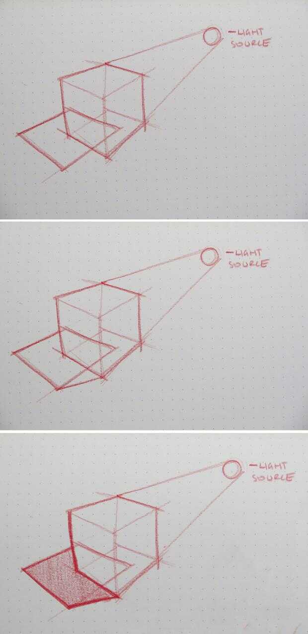 Recuerda que las sombras todavía siguen las reglas de la perspectiva y retroceden a puntos de fuga.