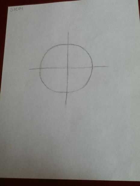 Dibujar dos líneas perpendiculares en el centro del círculo. Dibuja ligeramente