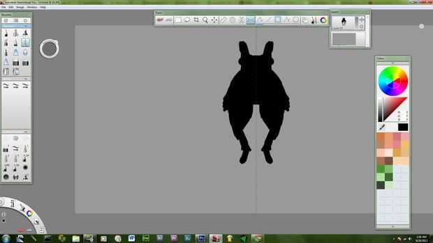 Tomar el pincel, empiezo a hacer al azar una forma hasta que empiezo a ver una criatura y en que momento parar y pensar en una idea de cómo debe verse la criatura. Retoques añadir más o menos a la figura hasta su idea toma más forma. Como se puede ver en la primera imagen comencé a pintar sólo al azar, pero poco a poco VI mutante conejo o buho kinda forma formando así que paró y empezó a mirar la forma dejando que mi imaginación vaya salvaje.