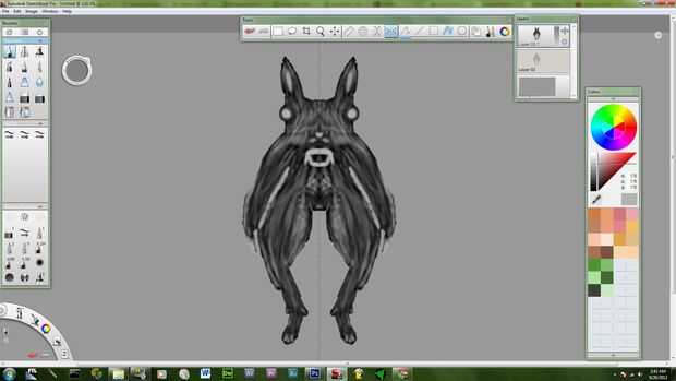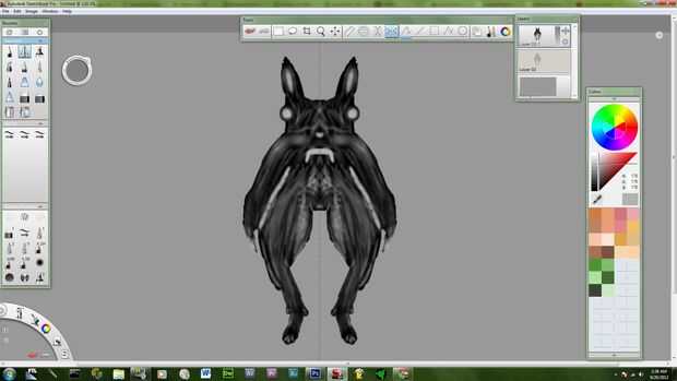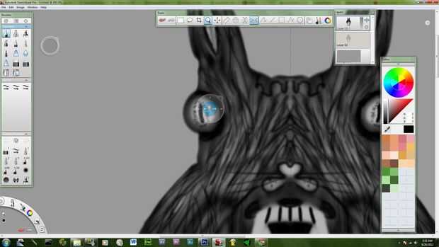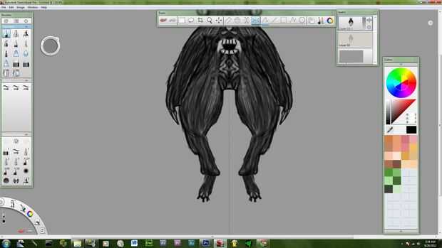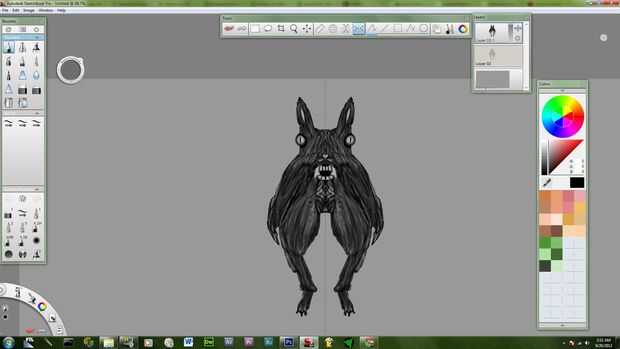Es difícil mostrar algo a alguien usando sólo palabras para transmitir un concepto que necesita cierta profundidad para que otros puedan ver. En la primera imagen tomo la herramienta aerógrafo y empezar a dar las sombras, "en carne" con las tripas y pequeños detalles como los dientes, ojos, oídos, nariz y garras. Lento y constante es la clave de que cada cuenta; no tenga miedo de cambiar el tamaño o la opacidad. En la segunda imagen me fui lentamente de la imagen otra vez dando una segunda capa. En la tercera imagen usar la herramienta lápiz en 1,9 b y lentamente agregadas líneas y detalles a la imagen como las orejas y los dientes y las agallas. la cuarta imagen me zoom y di los ojos algún detalle más y bigotes a la nariz. La quinta imagen es forro y definición añadiendo líneas oscuras negro donde tienen que ser como el intestino.