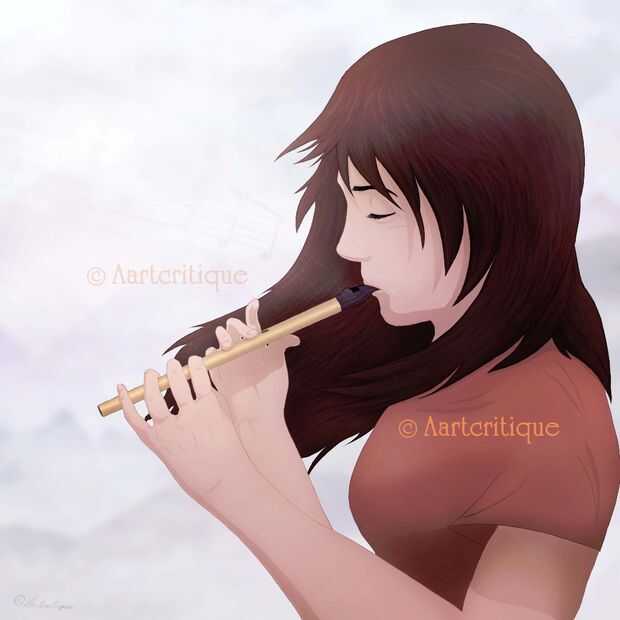 Usted puede dejar allí, o puede aplanar la imagen y ajustar como desee. Añadido algunas capas de colores sólidos, entonces cambió sus modos de capa para dar el dibujo un color extra. También he añadido algunas notas muy tenue música de fondo. Estas notas particulares son un extracto de 'La golondrina', una plantilla irlandesa tradicional. Mire para arriba; es una diversión muy poco tono. La nota que la chica está jugando no es lo mismo que las notas de fondo.
