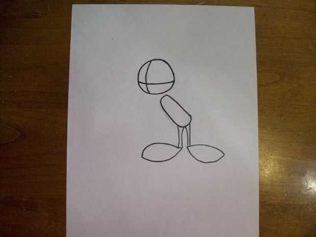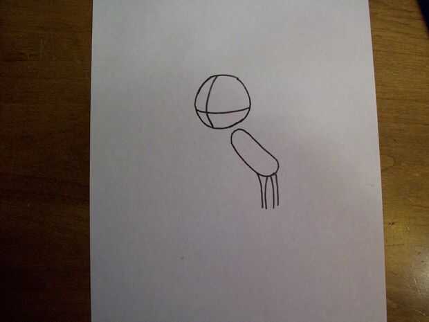 3) dibujar un par de flaco de piernas en la parte inferior de este óvalo. Cuerpo de Marvin es algo desproporcionado, por lo que las piernas deben ser muy finas (ver imagen 3).