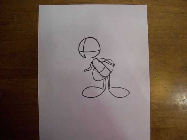 2) dibujar los brazos podría tomar un par de intentos. Los brazos son como las patas - muy flaco. En primer lugar, comience con el brazo izquierdo. Este brazo se dobla a un ángulo de casi 90 grados. El brazo derecho tiene una curva mucho más gradual y aparece más largo. Se refieren a la segunda imagen de ayuda visualizar los brazos.