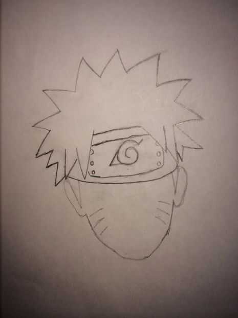 En los próximos pasos de la pareja se centrarán en la cara de Naruto. Dibujar el lado quema las esquinas inferiores de la diadema. Los bigotes deben colocarse en las mejillas y justo debajo de sus lóbulos de las orejas.
