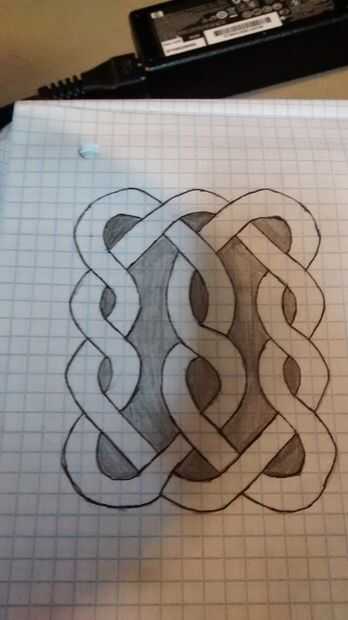 Hago dibujos de mano de obra de nudo celta (especifico "mano libre" porque siempre se preguntan dónde está la galería de símbolos). Vi esta idea en línea un par de años atrás. Comencé dibujando cuadrados básicos pero mis diseños han conseguido m