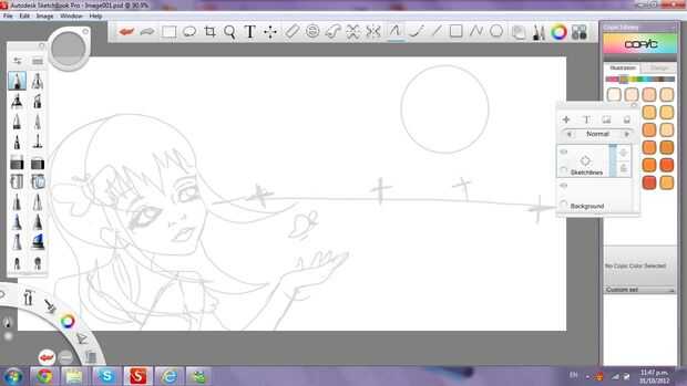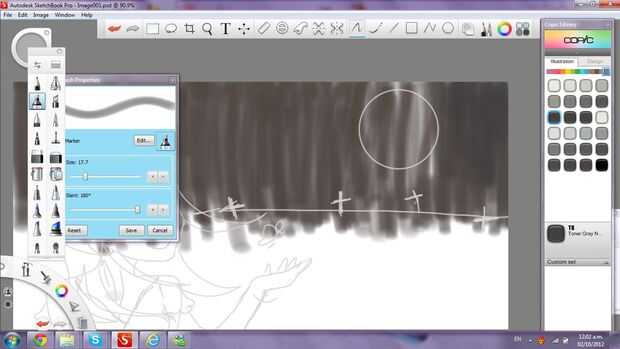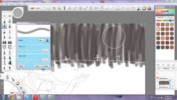 2) Abra la biblioteca estroboscópico y elija un color marrón sucio de ella con la herramienta de marcador que vamos a hacer las líneas para el cielo de color
